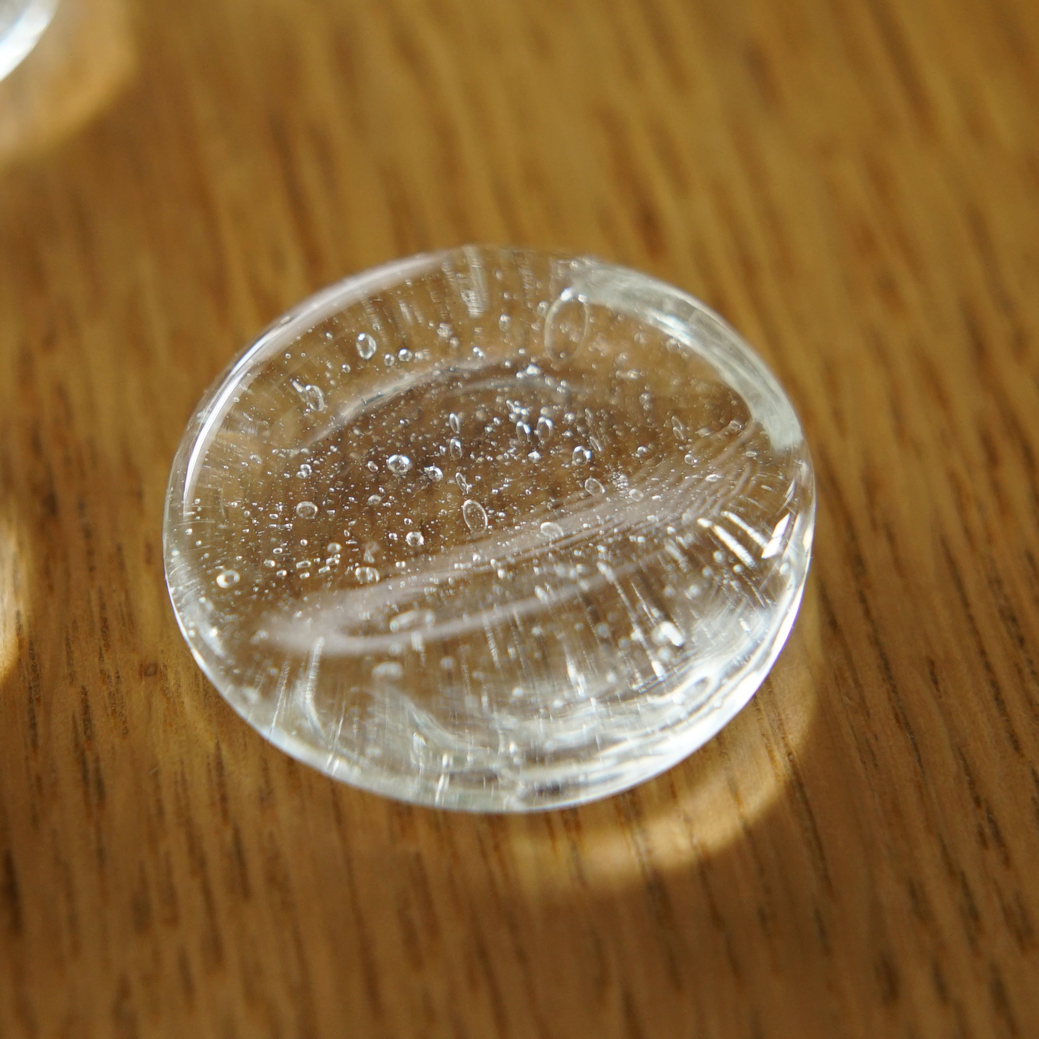 丸いかたちの中に、気泡やわずかな揺らぎが閉じ込められています。
