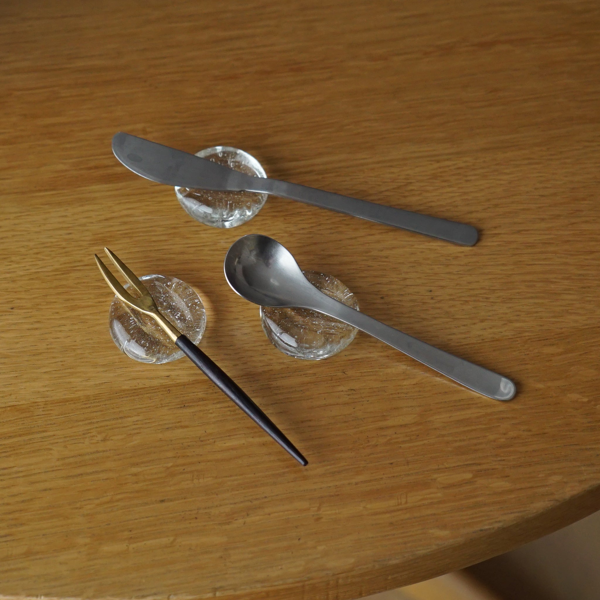 箸置きとしてはもちろん、小さなカトラリーを添えるような使い方も似合います。