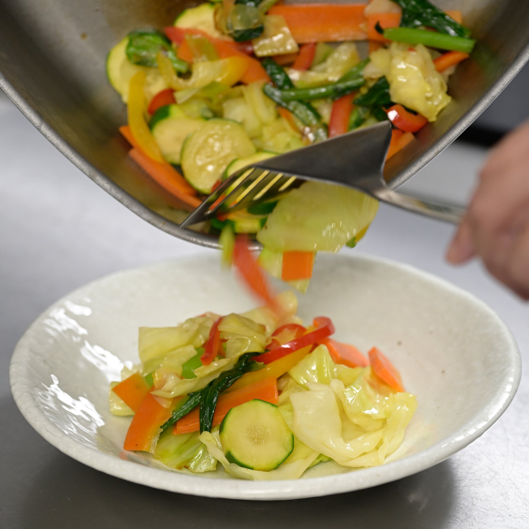 強火調理でしっかりと熱が入り、表面は香ばしく、中はジューシーに。