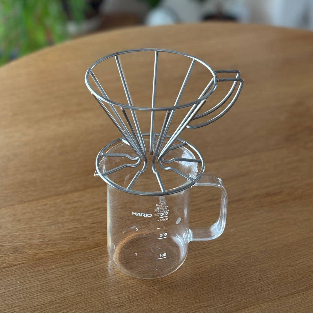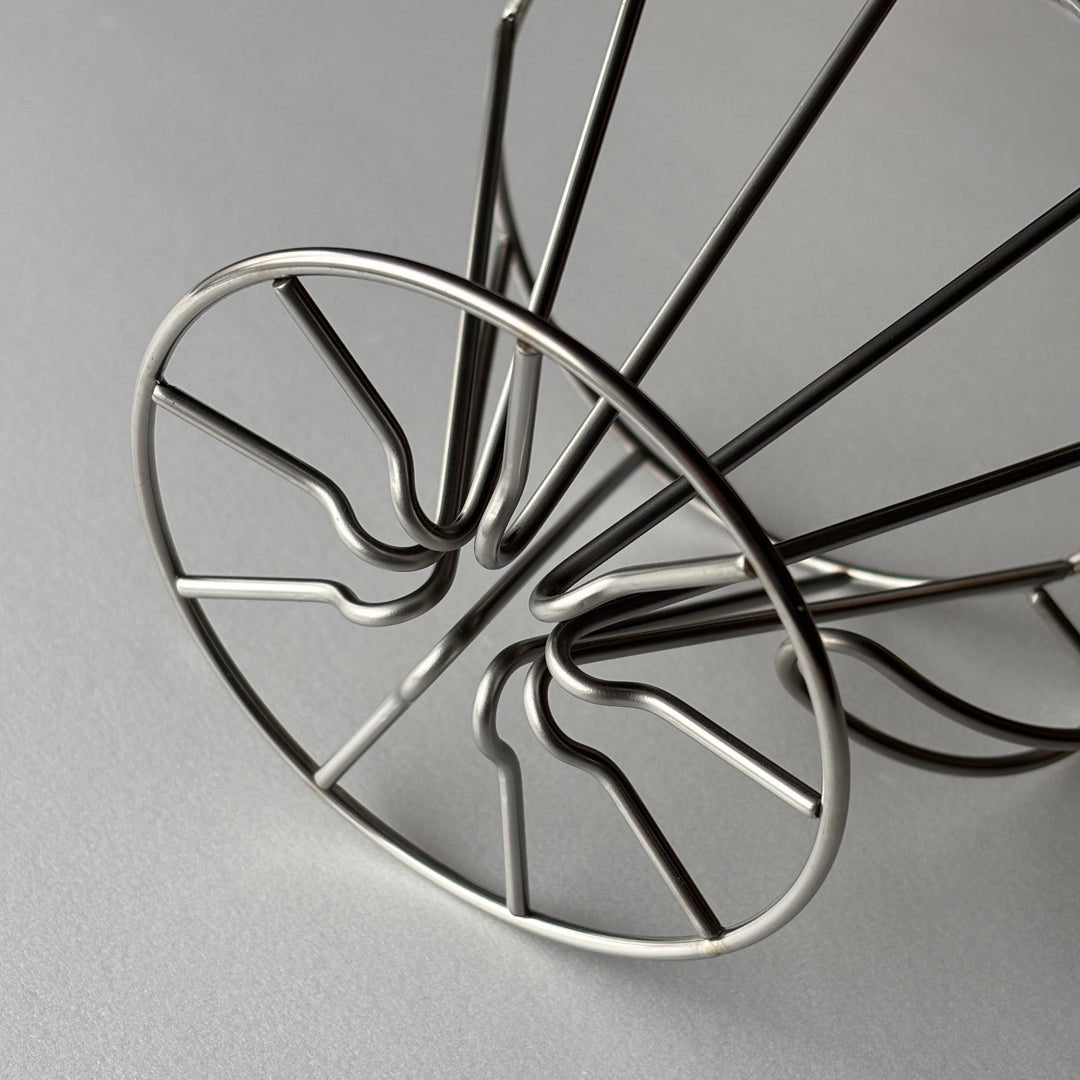 9本のワイヤーがフィルターをしっかり保持し、ドリップ中の安定感を実現。ワイヤーがリブの役割を果たし、フィルターとドリッパーの間にほどよい空間をつくることで、お湯の抜けがスムーズに。雑味のない、すっきりとした味わいを毎日楽しめます。軽量・洗いやすく、日常使いにぴったりです。