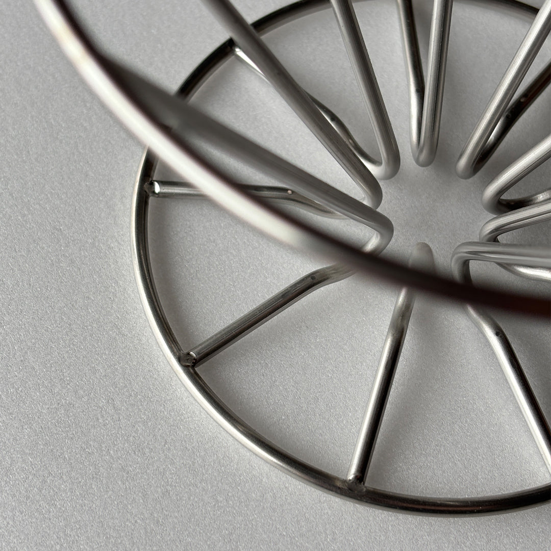 ツバメコーヒー店主の「デザイン性・使いやすさ・長く使える」この3つをすべて満たすドリッパーがほしいという想いから生まれたのが、ワイスケドリッパーです。新潟県燕市で、熟練の職人が一本一本のステンレスワイヤーを丁寧に溶接し、暮らしになじむ質感へと仕上げました。